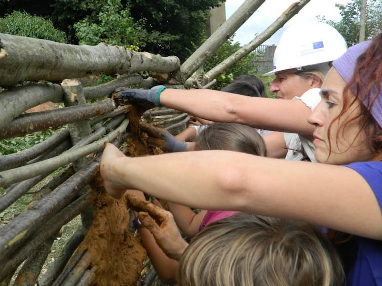 La construcción de una cabaña con materiales tradicionales es una de las aventuras más divertida. Pisar barro mezclado con paja para poner en las paredes resulta fascinante para el alumnado. !Y es una gran experiencia para comprender los problemas cotidianos de las sociedades en la historia!